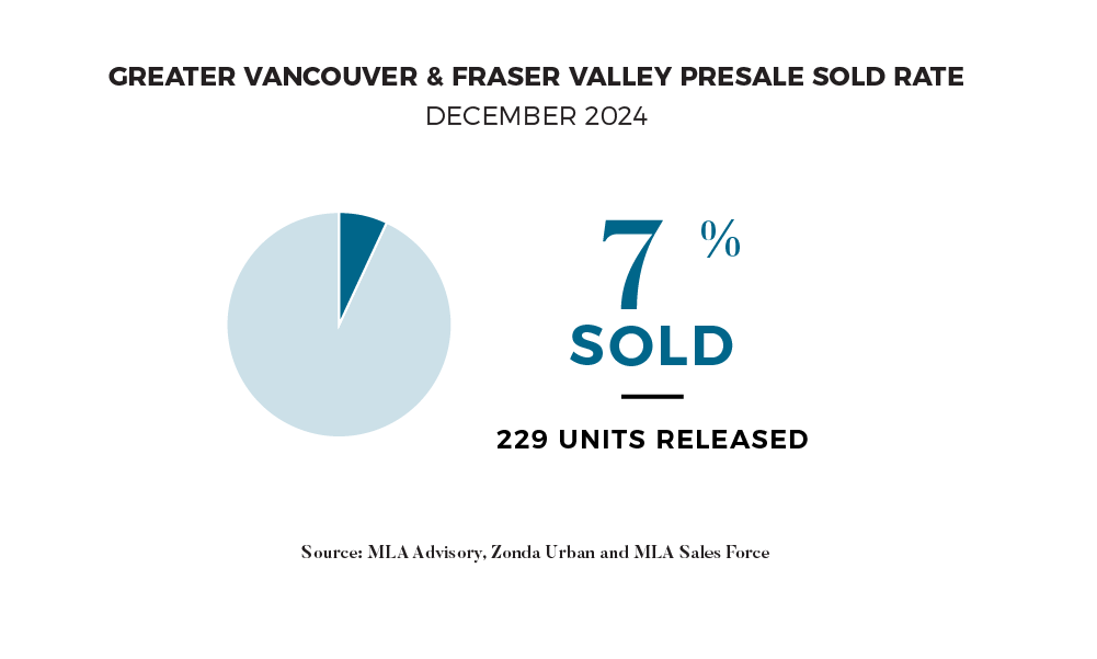 "The holiday months are typically quiet as sales galleries close and kids are off for Winter Break. This year was no exception, and it shows in the data. As we enter a new year in the presale space, developers remain challenged with the same themes from last year – mainly high costs to deliver and wavering buyer confidence. The first test of market depth will occur around Lunar New Year, with themed purchase incentives and marketing campaigns attempting to capitalize on new year cheer.” - Garde MacDonald, Director of Advisory