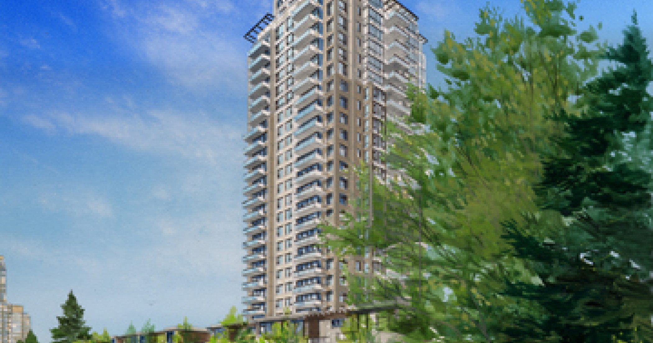 360 degree views offers stunning vistas of water, mountains, parks and more from Park 360. This concrete high-rise is next to parks and the Edmonds Skytrain Station and just down the hill from High Gate Village. Interior spaces are large and spacious and designed to take advantage of the expansive views.